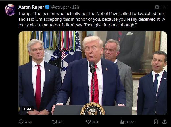 Georgia Congressman Buddy Carter proposed passing a law…to force Norway to give Trump the Prize “He deserves the Nobel Peace Prize, and that's why I'm introducing a resolution for a sense of Congress today that will honor him with the Nobel Peace Prize. And if need be, we'll call for a discharge petition on that,” said Carter on Fox News.