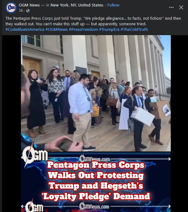 AND: As RadioActive already reported earlier, Pete Hegseth attempted to force all journalists to adhere to an insane policy of letting the White House dictate what they could report in the news and got a huge backlash, with every news agency handing in their press pass en masse, except one right-wing outlet. When you've lost FOX News and NewsMax, you know your regime is in trouble: