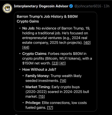 oh, hi there Barron Trump. That's who the community seems to have settled on as being the culprit. Because he seems to be constantly making millions upon millions on crypto, and has no job...