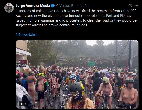 Meanwhile, in Portland Oregon, the residents have thankfully not taken the bait and done any violent protests that would give Trump and Miller exactly what they want: an excuse to use the Insurrection Act to take full military control of a Democrat held state. That doesn't mean there aren't protests however...