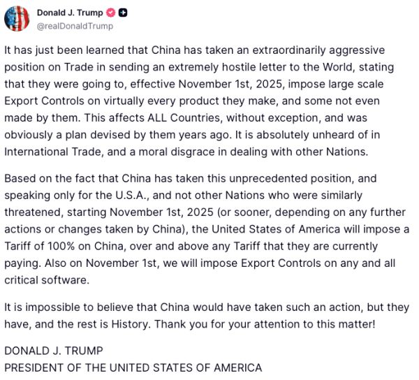 The smart money, including myself because I remembered what happened in April, knew that within a day or two Trump would "magically" reverse this 100% tariff on China, which would trigger a massive upswing in the markets: