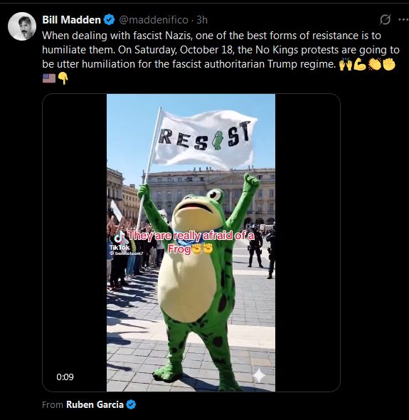 Tomorrow, Saturday Oct 18th marks the second "No Kings" protest that will be happening worldwide to show the strong resistance to Trump and the Heritage Foundation's attempt to turn the US into a dictatorship. There will be protests in several countries, including Canada, with turnout in the US alone expected to be in the millions.