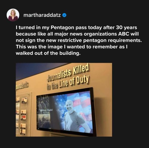 I was so impressed when they handed in their press passes en masse. The thing that gets me is that a former reporter is behind this, what a weasel Hegseth turned out to be, probably always was one, mind you. And the downward spiral continues.