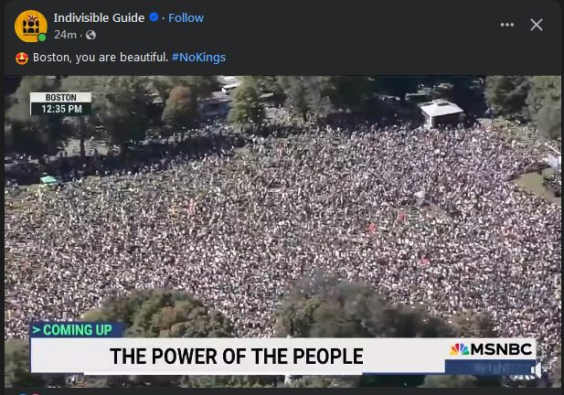 Yesterday's "No Kings" rally seems to have gone off astonishingly well. I've scanned social media and news for reports of any mass arrests or violent outbreaks and it seems that participants heeded the call to keep things serious but light-hearted. New York City police confirmed that they arrested no one at all, which is incredible considering the size of the turnout.