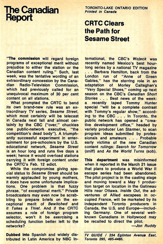 In my new book "ImagiNation - The Golden Age of Toronto Kids' TV" I cover the CRTC/Sesame Street debacle quite a bit. My favourite revelation is that the shows' biggest champion at the CBC was in fact Knowlton Nash, who also helped mold the eventual Canadianized version