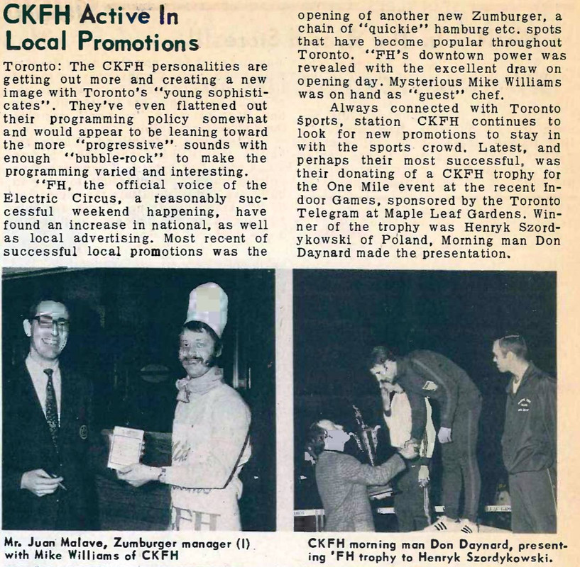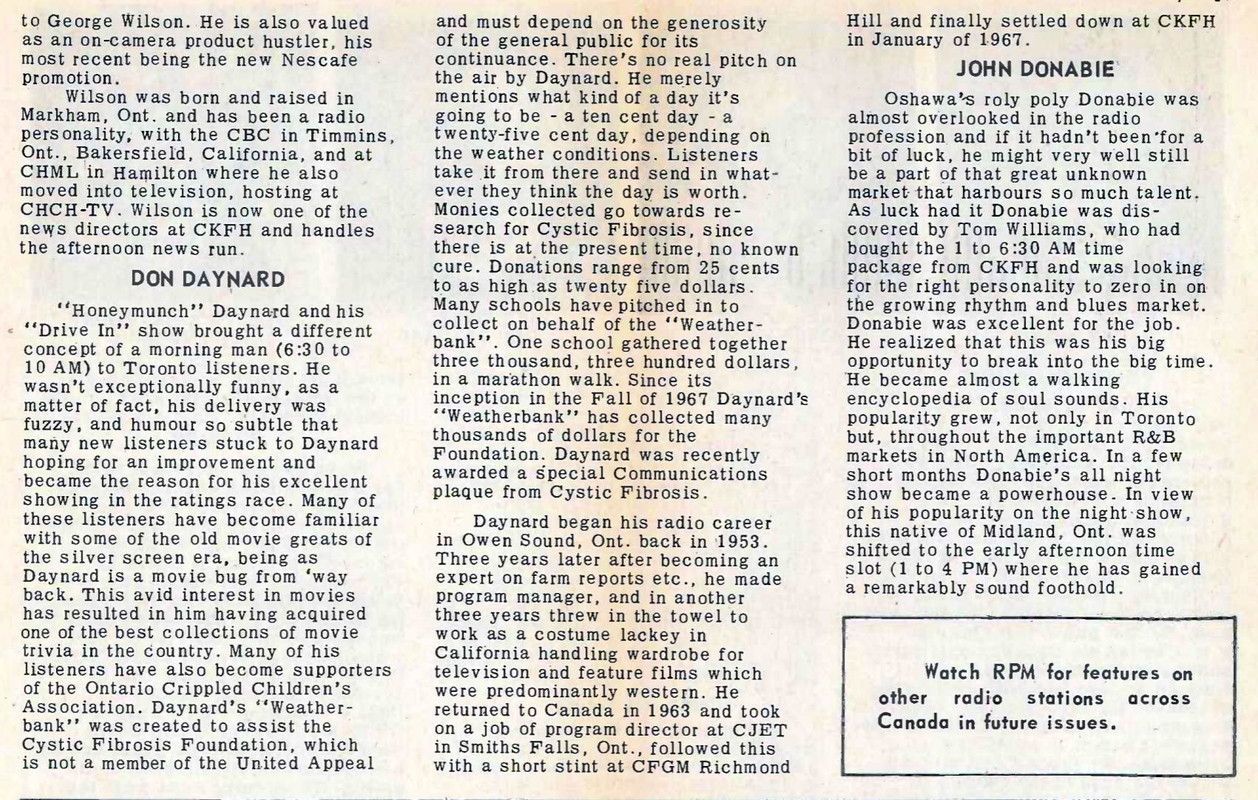 A few more memories, this one from 1968 when he was at CKFH. (Although I'm not entirely sure this was completely complimentary!) I had no idea Daynard once worked in L.A. as what the author calls a "costume lackey." And check out the pic of a very young newbie named John Donabie!)
