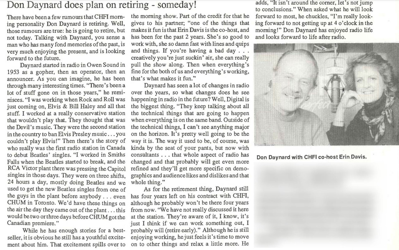 Former CKFM & CHFI morning man Don Daynard signs off at age 88