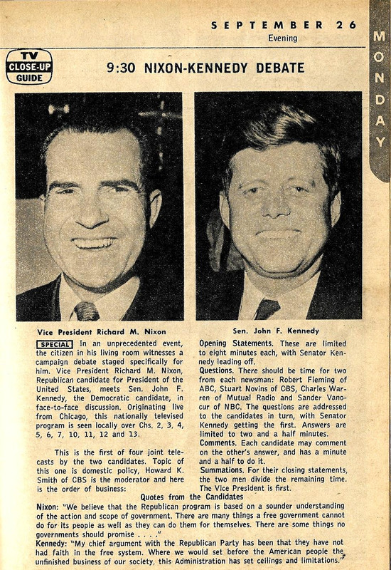 It took me a while to find the right one, but it was from the 1960 Fall Preview issue, the Lake Ontario edition. The channels mentioned in the debate preview were: