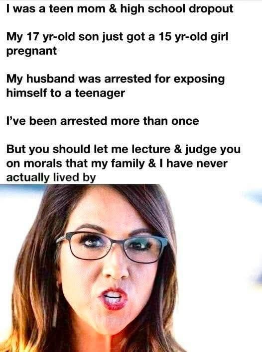 My best description of Boebert is she's a Tina Fey SNL skit character of a Republican come to life. Both MTG and LB are your typical right-wing hypocrites: they criticized Biden's plan to forgive $10,000 of university and college student loans while they themselves happily took PPP loans during the pandemic and had the loans forgiven: